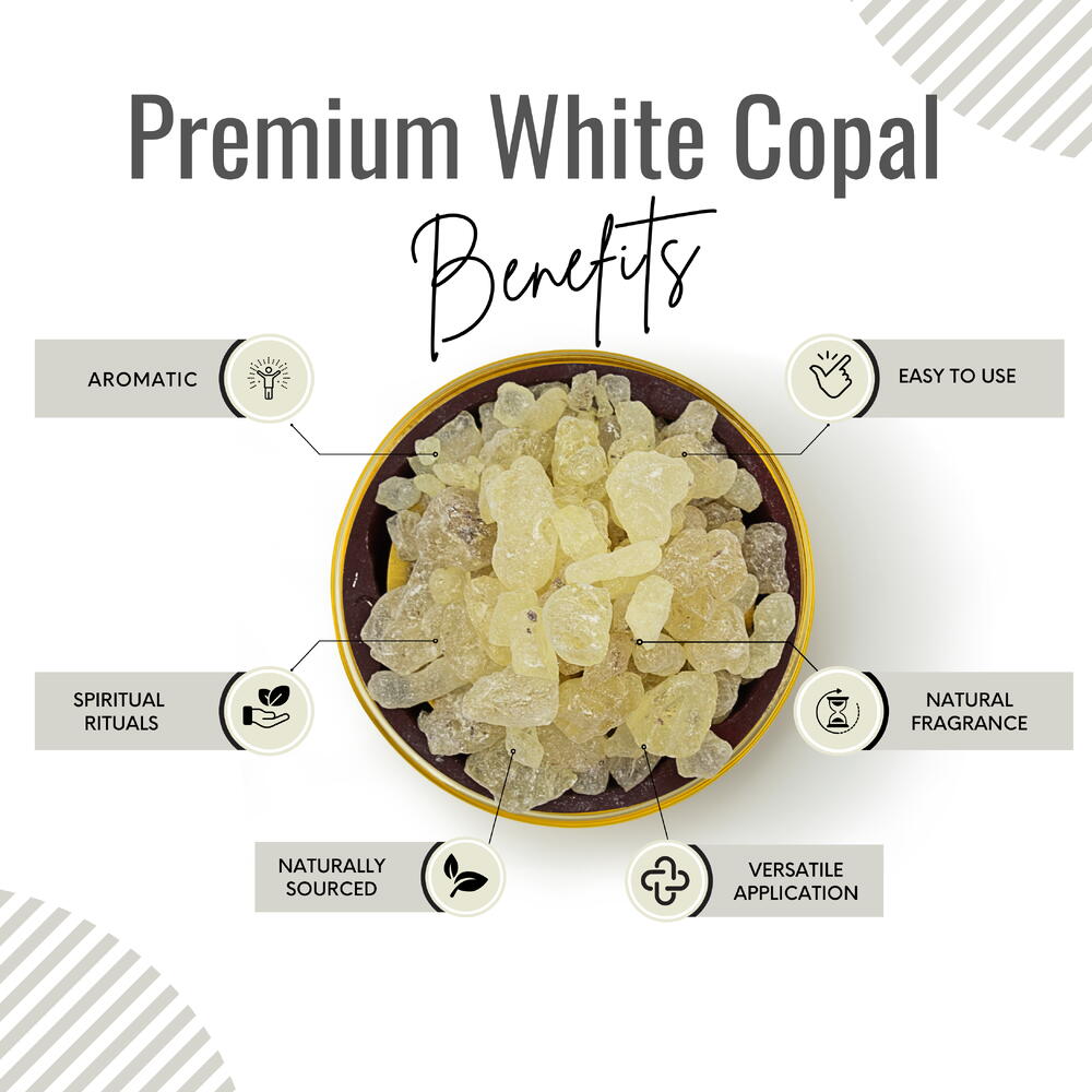White Copal Premium Incense Resin is a revered and aromatic natural resin that has been treasured for centuries in various practices. This premium-grade copal resin is harvested from the copal tree, a native species found primarily in the regions of Central America, particularly Mexico.Experience the captivating essence of White Copal Premium Incense Resin, a resinous treasure revered for its purity and fragrance. Harvested from the copal tree in the pristine regions of Central America, this incense resin boasts a translucent, pale appearance, which is a hallmark of its premium quality. Immerse yourself in the sacred traditions that have embraced White Copal for generations. With its rich history, this premium incense resin has played an integral role in indigenous rituals, shamanic ceremonies, and spiritual practices across the globe. Discover the profound symbolism and significance of White Copal as an offering of reverence and a conduit to the spiritual realm. Harness the cleansing power of White Copal Incense Resin as you embark on a journey of purification and renewal. When ignited, the resin releases a sweet, woody aroma that is believed to cleanse spaces of impurities.Uncover a profound sense of connection and serenity with White Copal Premium Incense Resin.Invite tranquility and mindfulness into your life as you bask in the serene ambiance created by the fragrant smoke of White Copal.
