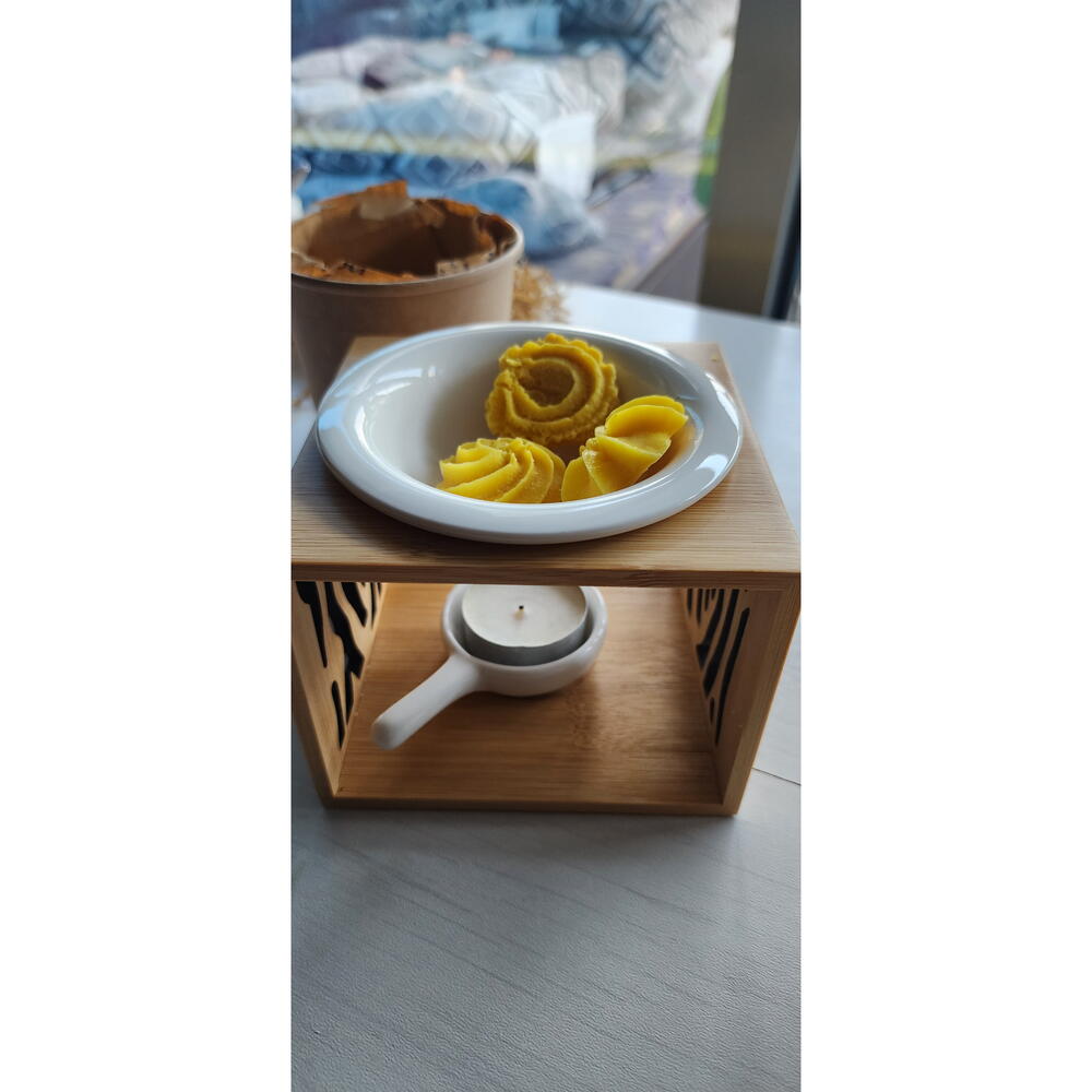 The aroma of delicious butter cookies baked to a golden brown. Perfect for small spaces. Doesnt come with wax burner. The box contains 15 wax melts