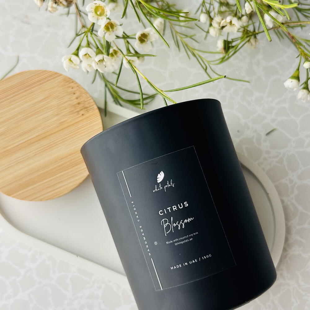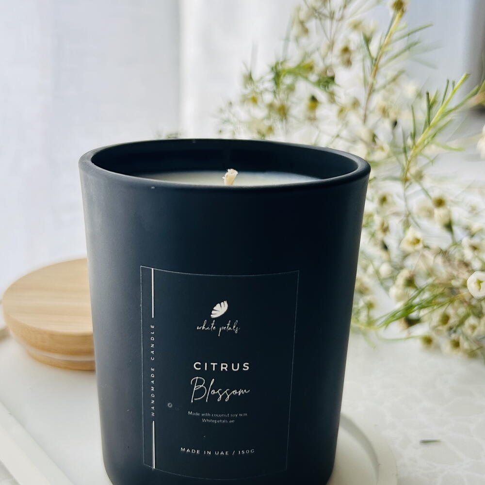 Citrus scented coco soy wax candle 150 gm wax Black jar