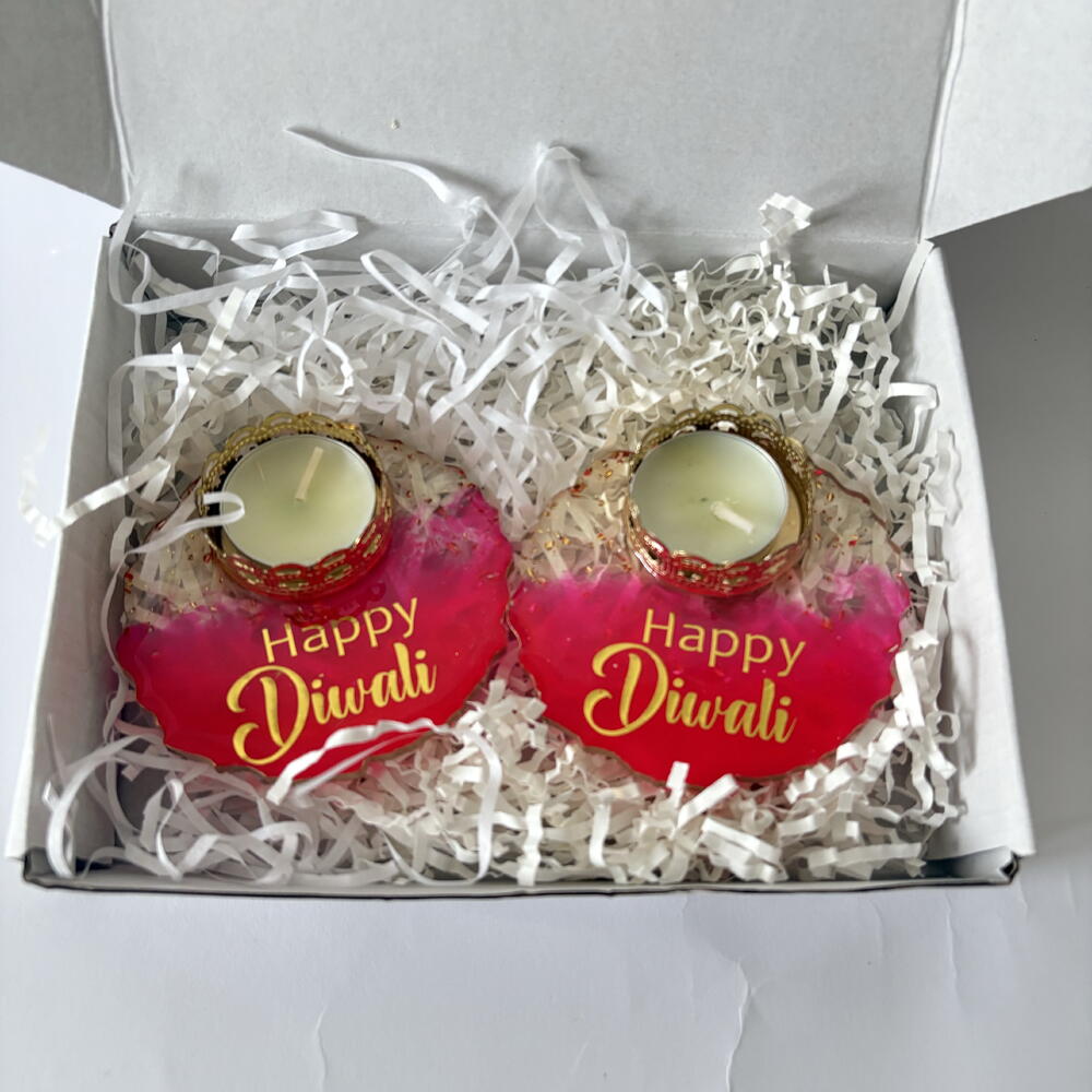 Happy Diwali Resin Tealight Diyas (Set of 2)