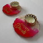 Celebrate the Festival of Lights with this elegant set of 2 resin tealight diyas. Featuring a vibrant pink and gold design with “Happy Diwali” written in golden lettering, each holder comes adorned with a delicate metallic crown design that beautifully frames the candle. Perfect for lighting up your home, enhancing rangoli décor, or gifting to family and friends, these diyas bring together tradition and modern style. A thoughtful choice for Diwali pooja, festive décor, or as a keepsake gift for loved ones.