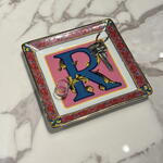 A refined pocket emptier from the sumptuous Ortigia collection, inspired by the vibrant traditions and artistic heritage of Sicily. Ortigia, the historic heart of Syracuse, is celebrated for its colors, aromas, and Mediterranean charm — elements beautifully reflected in this decorative porcelain tray. The design features a bold central monogram enriched with elegant baroque-style flourishes, set against a soft pink background that enhances its refined and decorative character. The ornate border, with intricate patterns and vivid red tones, frames the composition and adds depth and richness to the overall design. Crafted from fine porcelain with luminous finishes, this tray combines artistic elegance with everyday functionality. Ideal for holding keys, jewelry, coins, or small personal items, it also serves as a decorative accent that brings warmth, color, and Mediterranean sophistication to any interior.