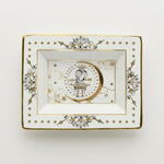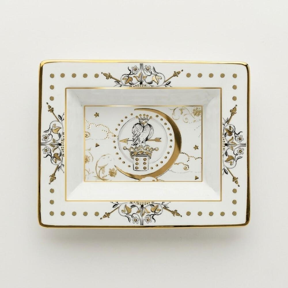 A refined tray inspired by ancestral wisdom and the ancient ability to observe the sky and the surrounding world to discover deep symbolic correspondences. Crafted from fine porcelain, the tray is decorated with delicate golden details that intertwine like embroidered threads, forming timeless celestial motifs and elegant ornamental patterns. At the center, the owl—an enduring symbol of wisdom—represents knowledge, intuition, and guidance. According to Native American traditions, the owl is considered the guardian of all knowledge. Awake during the night and able to see clearly in the darkness, it symbolizes clairvoyance and the ability to bring light, wisdom, and good advice where there is uncertainty. The luminous gold accents and refined artistic composition transform this tray into both a functional object and a decorative piece rich in meaning. Perfect for holding jewelry, keys, or small accessories, it adds elegance, culture, and symbolic beauty to everyday spaces. To preserve its beauty, clean gently with a soft cloth or mild soap and avoid abrasive materials.