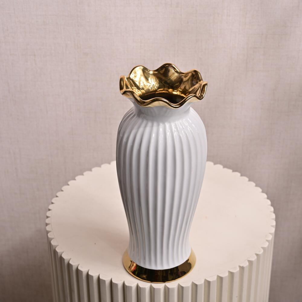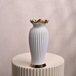 White Ceramic Vase with Gold Rim 6818