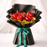 Bring the magic of the holidays to life with our Christmas Theme Apple Bouquet, a beautifully handcrafted festive arrangement by Fruitify. Featuring 5 premium red apples, this winter bouquet is accented with natural pine cones, red berries, and frosted pine sprigs to capture the classic Christmas spirit. Wrapped in elegant black and gold paper and finished with a green holiday ribbon, its a unique edible gift that combines seasonal charm with fresh, wholesome delight. Care Instructions: Store in a cool place away from direct sunlight and heat sources. For longer freshness, refrigerate the bouquet if not used immediately. Gently handle the bouquet to preserve its shape and presentation. Consume apples within 3–4 days for optimal taste. Ideal for gifting during Christmas, New Year, or winter festivities.