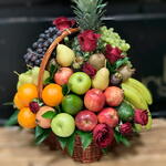 A vibrant and luxurious fruit basket designed to delight both the eyes and the taste buds. Brimming with a variety of fresh, juicy fruits and accented with rich red roses, this arrangement is perfect for celebrations, get-well wishes, or corporate gifting. The bright colors and natural beauty of the fruits are enhanced by the elegance of the floral touch. For optimal freshness, store in a cool place and consume ripe fruits within 2–4 days. Wash all fruits before eating. Avoid direct sunlight and keep roses hydrated if planning to reuse in floral arrangements.