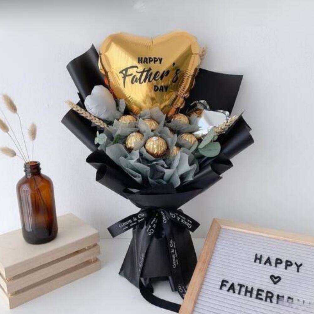 Ferrero rocher - 15 pcs eucalyptus leaves - 5 pcs heart foil balloon golden - 1 pcs silver foil hearts - 2 pcs