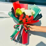 Elevate your gifting game with our Special Berry Bouquet, a delightful blend of nature’s finest. This hand-crafted edible bouquet combines 9 juicy strawberries, 7 plump blackberries, and 3 fresh flowers, offering a stunning mix of color, fragrance, and flavor. Wrapped in striking UAE-themed colors—green, black, red, and white—and tied with a matching festive ribbon, this bouquet is a celebration of beauty and taste. Whether youre marking a birthday, holiday, National Day, or simply want to show someone you care, this arrangement delivers charm and cheer in every bite. Care Instructions: Keep the bouquet cool and away from direct sunlight. If not eaten right away, refrigerate the fruits to retain freshness and crispness. Remove the protective wrapping and wash fruits gently before consumption. Display with care as a centerpiece or gift, and enjoy within 1–2 days for the best taste and appearance.