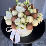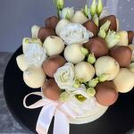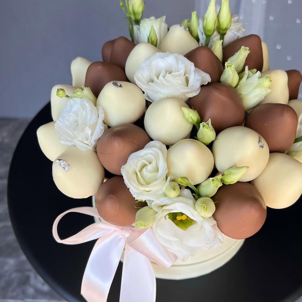 Luxury Chocolate-Covered Strawberry Berry Basket Surprise your loved ones with this stunning gourmet fruit basket, perfect for any special occasion! This beautiful arrangement features: • Fresh, juicy strawberries, some dipped in smooth milk chocolate and decorated with elegant swirls and raspberry flakes • Plump, sweet blueberries nestled between the strawberries • Delicate white chocolate roses for an extra touch of elegance • All presented in a charming wicker basket with a bold red satin ribbon Ideal for birthdays, anniversaries, romantic surprises, or as a unique edible gift that delights both the eyes and the taste buds.