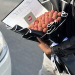 This unique gift features a lush cluster of fresh, pink-skinned lychees wrapped in elegant black and white paper. It is a modern and edible alternative to traditional flowers, perfect for someone who loves sweet treats and bold style. The bouquet combines the tropical beauty of the fruit with a sharp, fashion-forward presentation. It is hand-crafted to look like a piece of art and is designed to be shared, peeled, and enjoyed.
