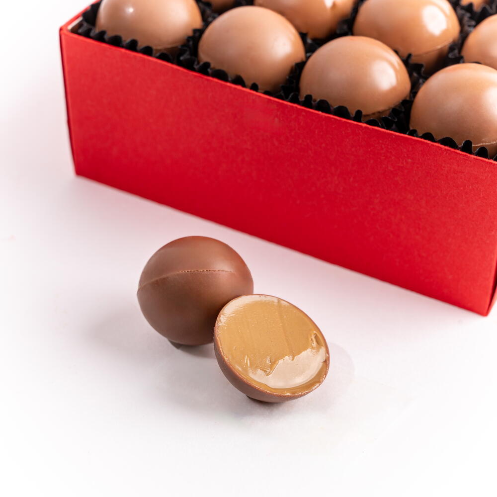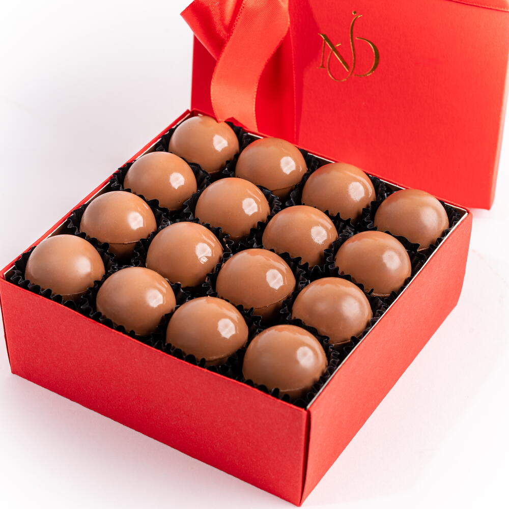 16x trufas surtidas de chocolate con leche Un gran gesto de indulgencia sedosa. Presentado en una imponente caja carmesí que irradia pasión y prestigio, El Clásico Carmesí es un tesoro de dieciséis esferas impecables de chocolate con leche. Cada trufa, acabada a mano, promete un momento de pura dicha, envolviendo el paladar en una sinfonía aterciopelada de rico cacao y dulzura cremosa. Es la máxima expresión de abundancia y gusto refinado.