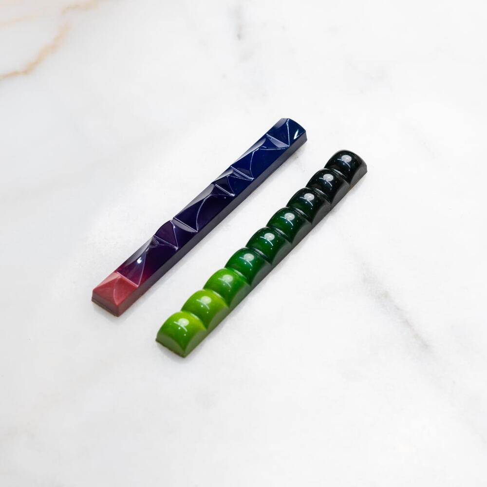 -Chocolate con leche premium -Nuez pacana y frutos rojos -Ganache de pistacho -Manteca de cacao