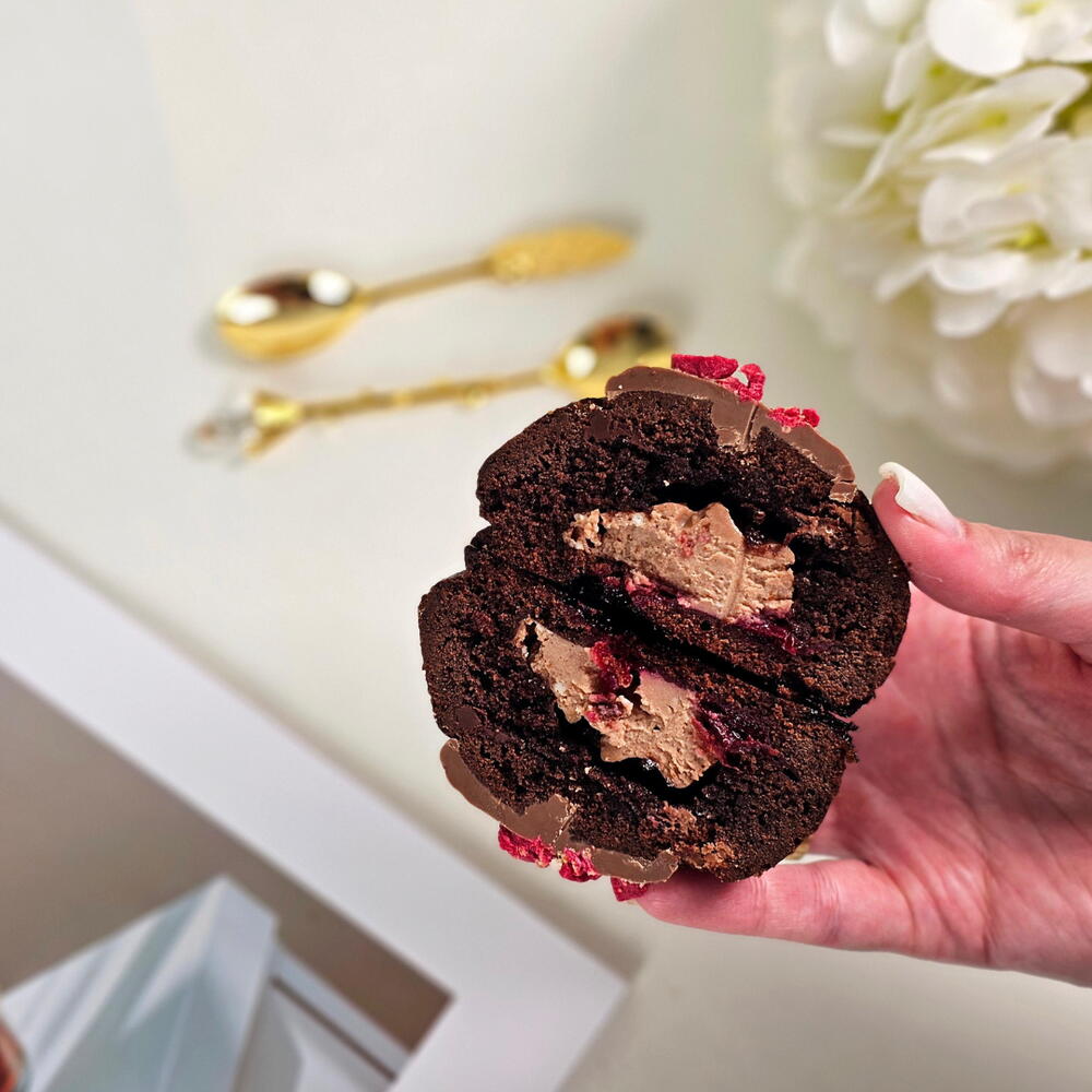 Mantequilla, azúcar de caña, azúcar blanco, huevos, harina, levadura química, sal, chocolate blanco, chocolate con leche, chocolate negro, chocolate con caramelo, cacao en polvo, nata, queso crema, maicena, pectina NH, zumo de limón, arándano rojo, fresa, frambuesa, guinda, avellanas, pistachos, pasta de pistacho, masa kunafa. Los ingredientes pueden variar según el sabor seleccionado.