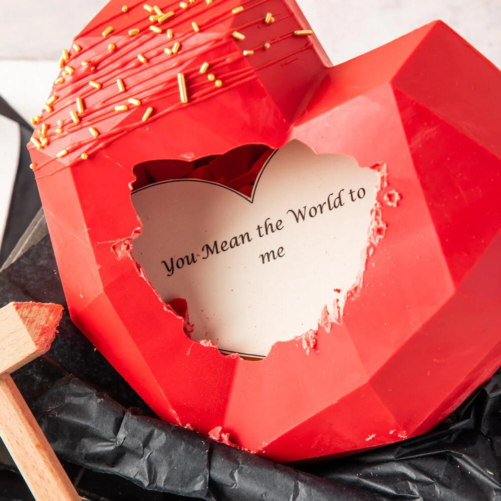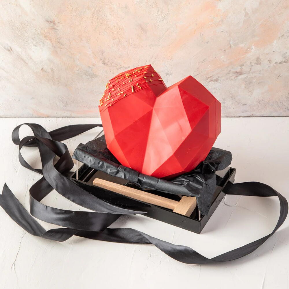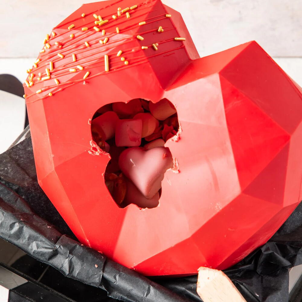 Tu regalo contiene: • Corazón 3D / piñata rellena de corazón • Chocolates surtidos, pretzels cubiertos de chocolate • 1 martillo • Peso: aprox. 800 g • Tamaño del corazón: 17 x 8 x 18 cm • Tamaño de la caja/bandeja: 20,5 x 13 x 20,5 cm (largo x ancho x alto) • Tarjeta personalizada para colocar dentro del corazón (OPCIONAL): hasta 100 caracteres • Tamaño de la caja: 20 x 12 x 21 cm (largo x ancho x alto)