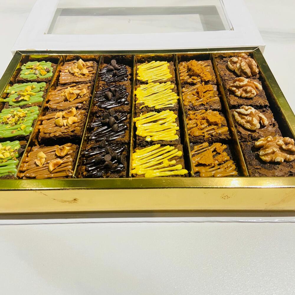 Caja surtida de brownies con seis sabores; especialmente elaborada para reuniones y fiestas para agasajar a tus invitados de una manera dulce