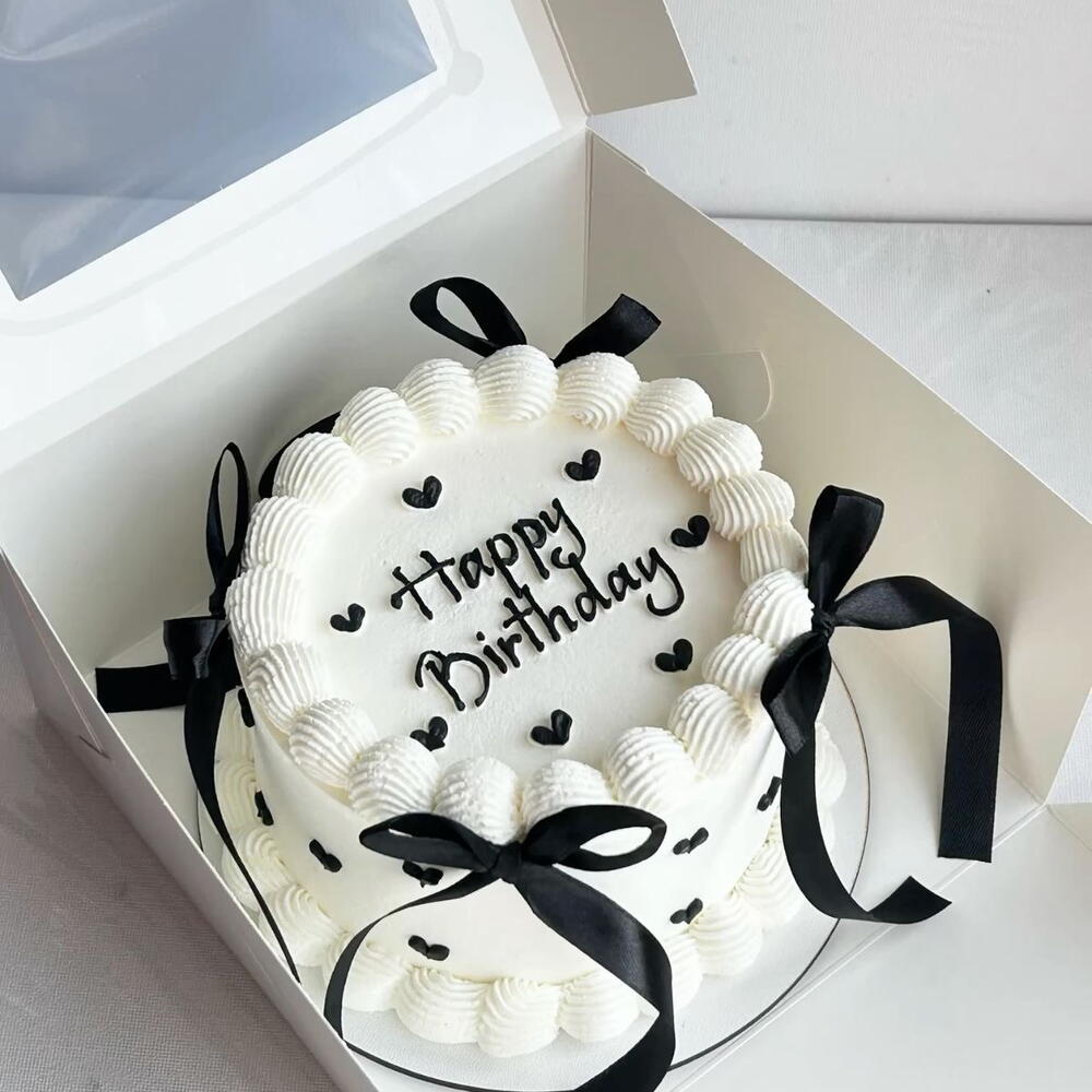Celebra con estilo con nuestro exquisito Pastel de Cumpleaños de Vainilla, diseñado para darle un toque de sofisticación a cualquier día especial. Este pastel presenta un suave y aterciopelado bizcocho de vainilla con un glaseado ligero y cremoso. Decorado con delicados ribetes de concha, pequeños detalles de corazones negros y elegantes lazos de satén negro, combina a la perfección minimalismo y lujo. Presentado en una caja de regalo premium, este pastel es ideal para cumpleaños, sorpresas y celebraciones con estilo. Sabor: Vainilla Clásica Diseño: Crema blanca con detalles de corazones negros y lazos de satén Perfecto para: Celebraciones minimalistas, elegantes y monocromáticas