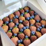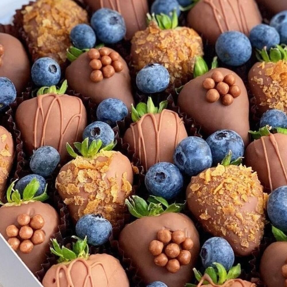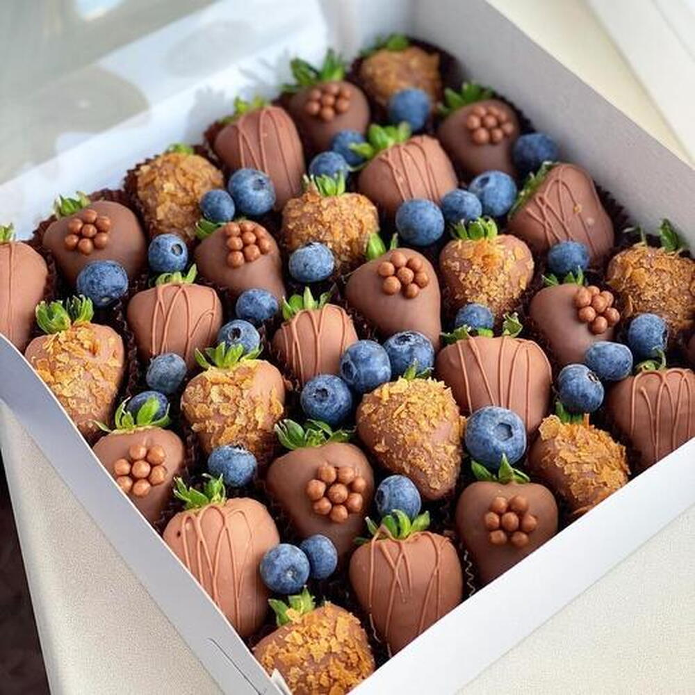 Disfrute de la elegancia pura con nuestra Caja de Lujo de Fresas y Arándanos Bañadas en Chocolate, hecha a mano. Fresas frescas y jugosas están cuidadosamente bañadas en un suave y sedoso chocolate con leche, algunas con un delicado toque de chocolate, otras recubiertas de crujientes hojuelas doradas para una textura extra. Cada caja está exquisitamente decorada con arándanos frescos, creando un equilibrio perfecto entre dulzura y frescura. Preparado cuidadosamente en una caja de regalo premium, este set es ideal para: Cumpleaños Aniversarios Sorpresas románticas Regalos de agradecimiento Momentos de lujo para darse un capricho Detalles: Fresas frescas bañadas en chocolate con leche premium Cubierta con una crujiente cobertura de perlas de chocolate Decorado con arándanos frescos Hecho a mano por encargo Entregado en una elegante caja de regalo ✨ Un postre refinado diseñado para impresionar a primera vista y deleitar con cada bocado.
