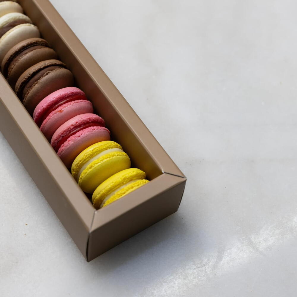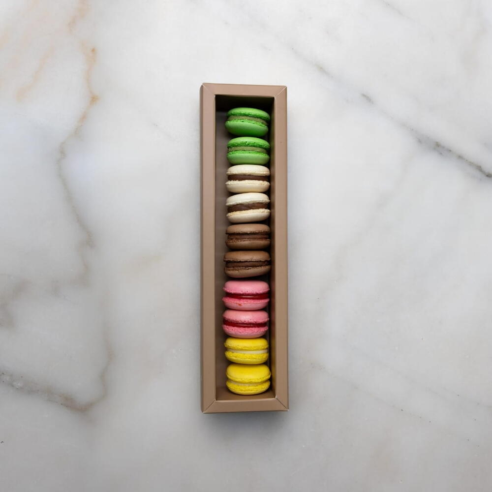 Sumérgete en el encantador mundo de nuestros macarons artesanales hechos a mano, orgullosamente elaborados con los mejores ingredientes, incluyendo harina de almendra, azúcar y claras de huevo. Experimenta una sinfonía de sabores con exquisitos Chocolate, Vainilla, Pistacho, Fresa, Caramelo Salado, Frambuesa, Mango, Arándano, Café y Limón. Cada bocado está diseñado para asombrar a tus papilas gustativas mientras satisface tus necesidades dietéticas, ya que todos nuestros macarons son sin gluten. Disfruta de estos pequeños pastelitos franceses que prometen una experiencia lujosamente dulce.