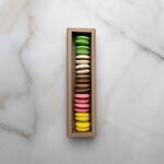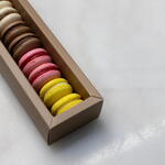 Macarons artesanales hechos a mano: Harina de almendra, azúcar, claras de huevo Sabores: Chocolate, Vainilla, Pistacho, Fresa, Caramelo Salado, Frambuesa, Mango, Arándano, Café, Limón Colorante alimentario SIN GLUTEN