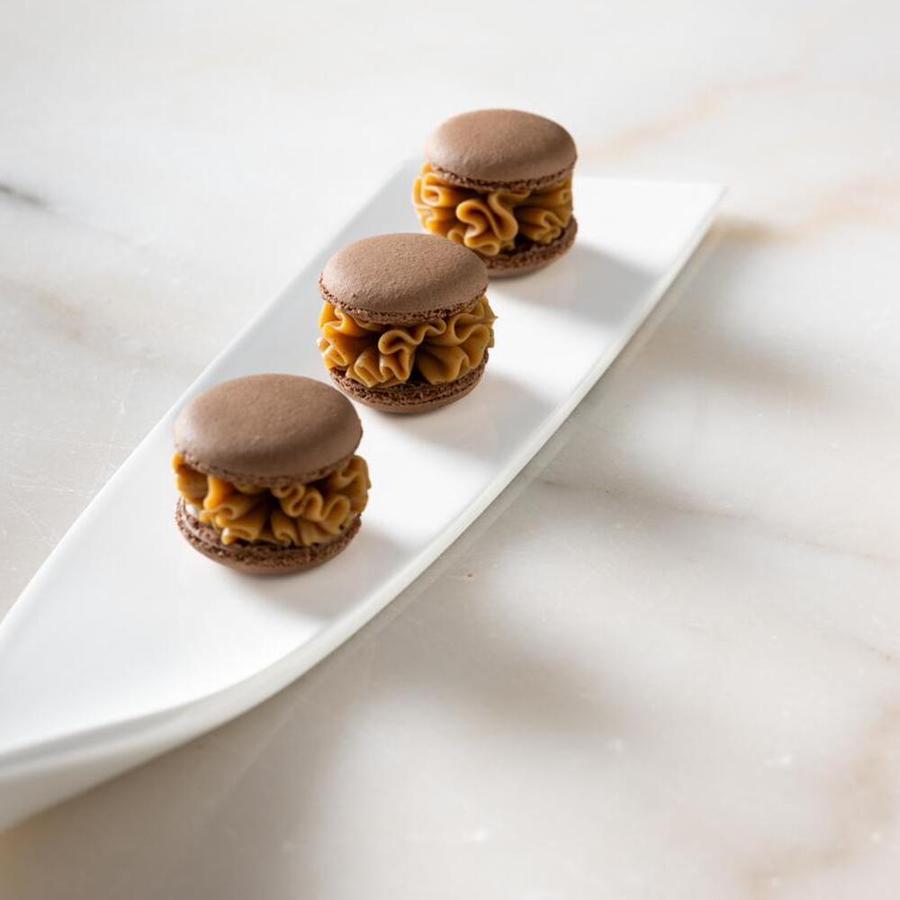 Descubra el arte de la pastelería con estos macarons artesanales hechos a mano. Elaborados a partir de harina de almendra, azúcar y claras de huevo, estas delicias encantarán su paladar con una variedad de sabores. Deléitese con nuestros sabores irresistibles: chocolate, vainilla, pistacho, fresa, caramelo salado, frambuesa, mango, arándano, café y limón. Además, todos nuestros macarons son sin gluten. Sumérjase en el mundo de las delicias francesas y disfrute de nuestros macarons deliciosamente ligeros y delicados.