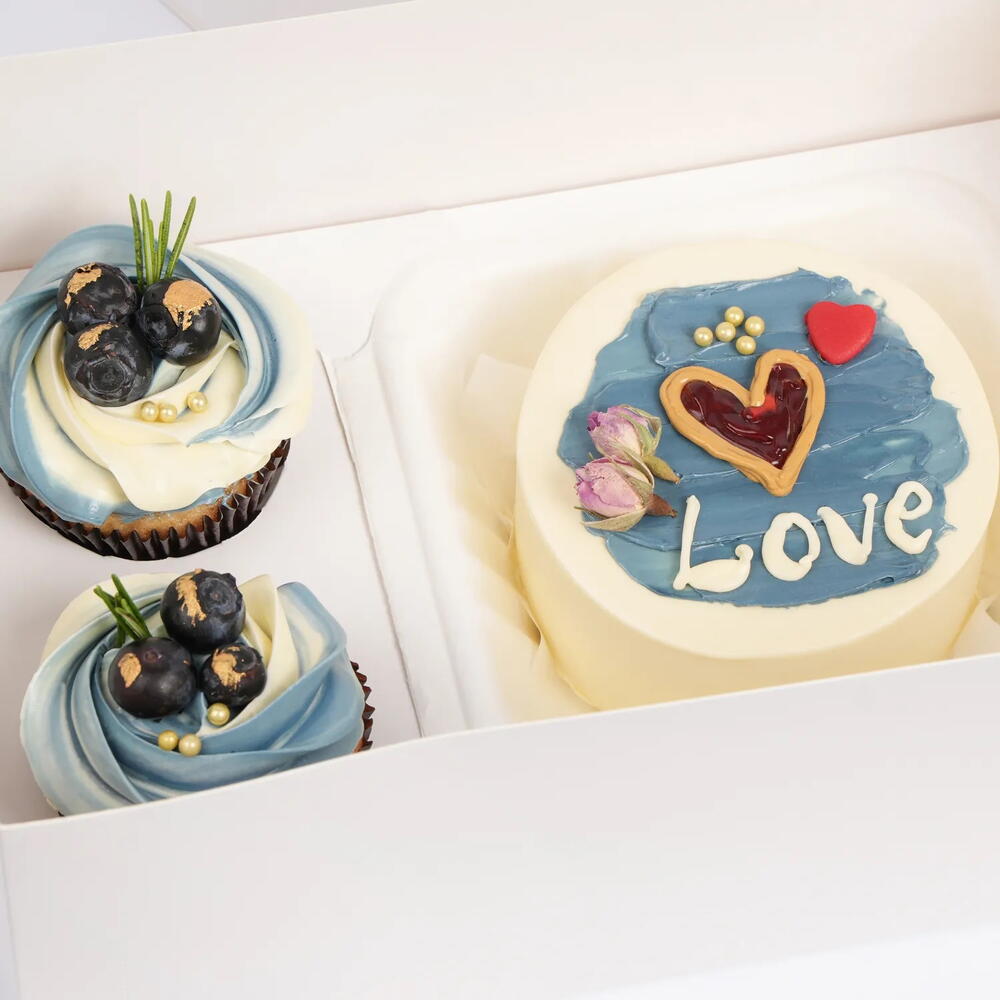 Heartfelt Bento Cake N Cupcake Duo