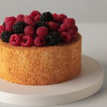Crema agria, harina, queso crema, miel de trigo sarraceno, azúcar blanca, frambuesa, mora, mantequilla sin sal, nata, azúcar glas, huevos, bicarbonato de sodio, sal. Alérgenos: leche, huevos, gluten Valor nutricional por 100 g: proteínas 4,0, grasas 32,3, hidratos de carbono 33,5, calorías 415