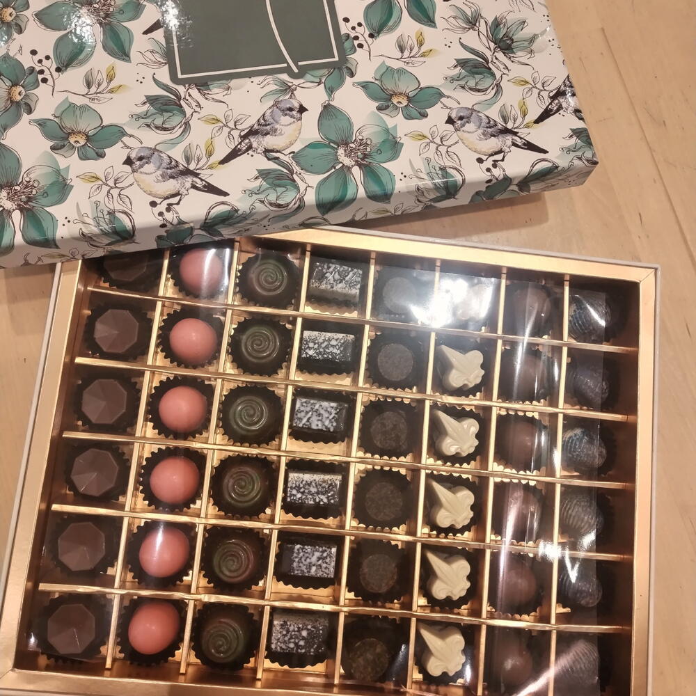 El surtido de chocolates de lujo presenta una selección refinada de chocolates belgas artesanales, cuidadosamente dispuestos en una bandeja cuadrada dorada de primera calidad y presentados en una elegante caja con estampado. Con una variedad de chocolates con leche, oscuros y blancos con rellenos intensos y texturas variadas, este set es perfecto para regalos sofisticados, celebraciones y ocasiones corporativas. Disponible para recogida o entrega el mismo día.