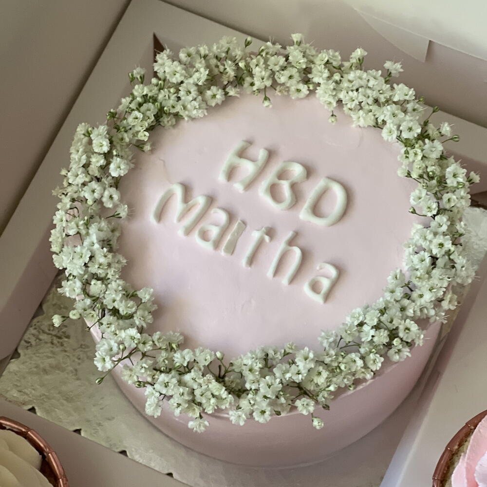 Es un pastel de vainilla con una base suave y esponjosa. Está relleno en capas con una rica salsa de caramelo salado y nueces tostadas para darle un toque más dulce y delicioso. Es un regalo especial para el Día de la Madre para las mamás que tanto aman. Se usaron flores de nacimiento como decoración para embellecer el pastel.