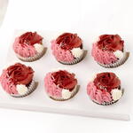 Una caja bellamente presentada de cupcakes ricos y húmedos, rematados con remolinos de glaseado sedoso en rosa y crema. Delicados, indulgentes y cuidadosamente elaborados para momentos de amor, agradecimiento y celebración.