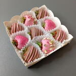 LA CANTIDAD DE FRUTOS ROJOS PUEDE VARIAR SEGÚN SU CALIBRE. Fresas con chocolate (9 unidades). Chocolate: con leche, rosa. Chispas, higos liofilizados, azúcar rojo. Composición del chocolate blanco: azúcar, manteca de cacao, leche entera en polvo, emulgente, lecitina de soja, pasta de cacao, aroma natural (vainilla), colorante perlado, chispas de confitería. El contenido de cacao no es inferior al 25 %. Valor nutricional por 100 g de producto: proteínas - 7,3 g, grasas - 30 g, carbohidratos - 58,8 g. Valor energético: 538 kcal / 2250 kJ. Composición del chocolate con leche: azúcar, manteca de cacao, leche entera en polvo, emulgente, lecitina de soja, pasta de cacao, aroma natural (vainilla), colorante perlado, chispas de confitería. El contenido de cacao no es inferior al 39 %. Valor nutricional por 100 g de producto: proteínas – 9 g, grasas – 36 g, carbohidratos – 51 g. Valor energético: 560 kcal/2360 kcal Nuestros productos contienen cacahuetes y derivados de la avellana. Rogamos a nuestros clientes con alergia al cacahuete que tengan precaución antes de consumir este producto.