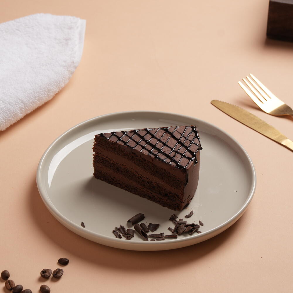 Disfruta de una rebanada de pastel de chocolate sin azúcar, rica y jugosa — todo el sabor a chocolate que te encanta, sin azúcares añadidos.