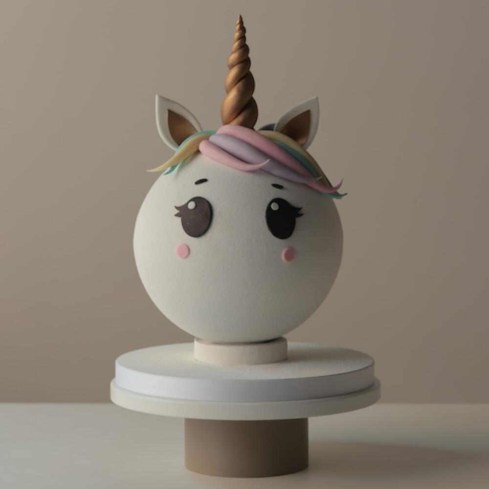 Pastel de unicornio hecho con grandes esferas de chocolate y decoraciones de fondant. La esfera está medio vacía y contiene 1,5 kg de pastel, es suficiente para 6-7 personas. Tamaño de la caja: 34*34*45cm