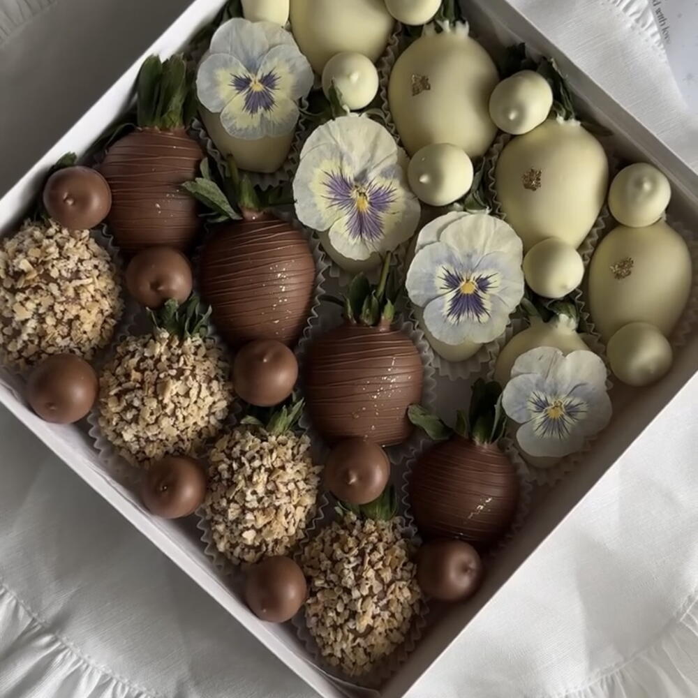 Una elegante caja de fresas bañadas a mano en chocolate, diseñada para impresionar a primera vista. Este surtido de lujo incluye fresas frescas cubiertas con sedoso chocolate blanco y con leche, rematadas con coberturas crujientes de frutos secos, delicadas perlas de chocolate y flores comestibles para un toque verdaderamente refinado. Perfecto para el Día de San Valentín, aniversarios, cumpleaños o cualquier momento en que las palabras no son suficientes. Fresas frescas bañadas en chocolate blanco • Fresas frescas bañadas en chocolate con leche • Fresas cubiertas con frutos secos triturados • Perlas de chocolate blanco • Trufas de chocolate con leche • Flores comestibles para decoración • Empaque en caja de regalo premium Presentado en una caja de regalo premium Hecho con fresas frescas Chocolate belga de alta calidad Decorado con flores comestibles Hecho a mano con amor y cuidado Un gesto dulce que luce tan hermoso como sabe.