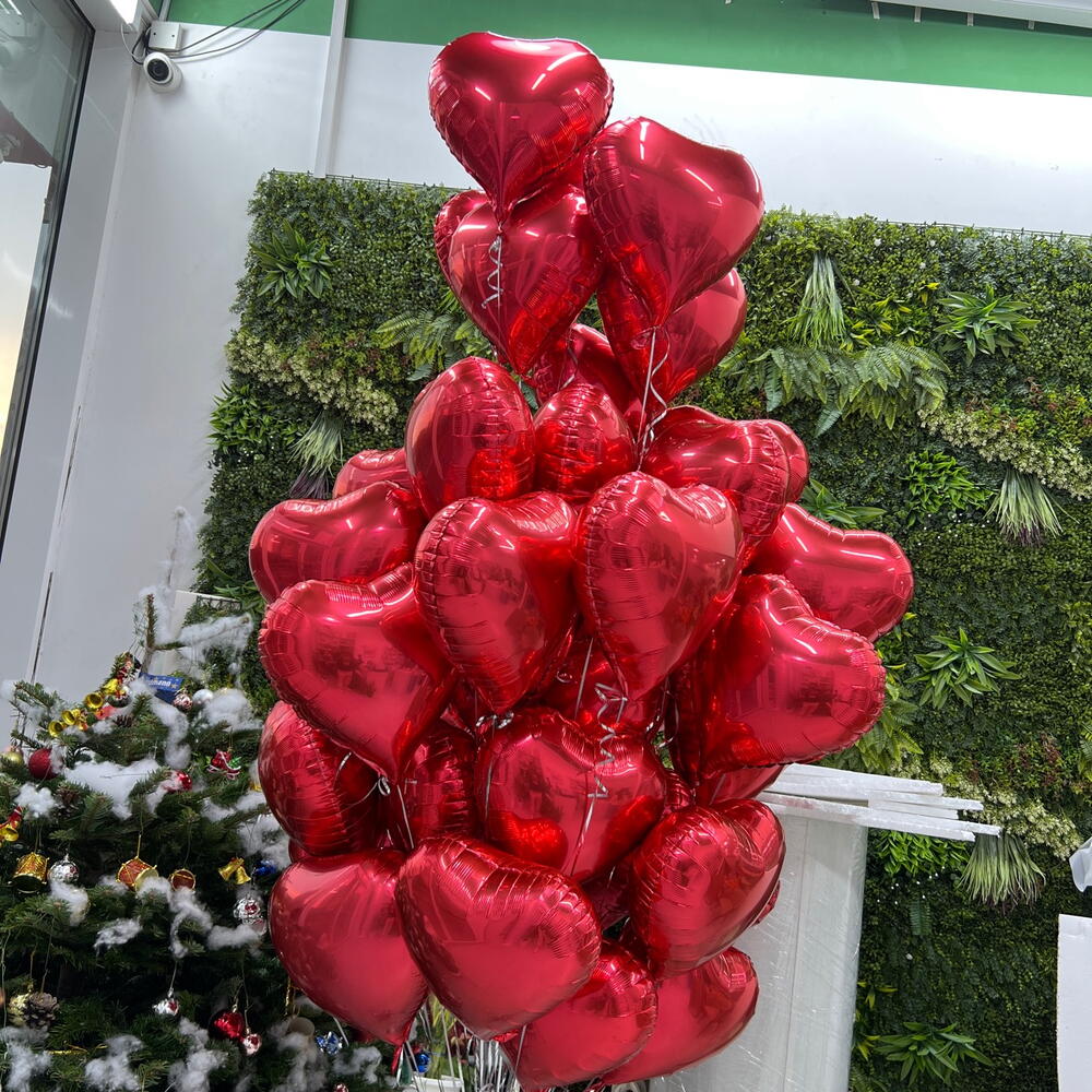 35 globos rojos en forma de corazón con helio