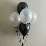 Añade un toque de sofisticación clásica con nuestro set de 5 globos de látex negros y blancos, que incluye 3 globos blancos nítidos y 2 globos negros llamativos. Esta combinación minimalista pero elegante aporta un contraste con estilo a cualquier celebración. Perfectos para cumpleaños, eventos formales, fiestas por hitos o decoración temática, estos globos crean una atmósfera chic y atemporal. Fabricados con látex biodegradable de alta calidad, cada globo ofrece un acabado suave, color vibrante y una flotación duradera, ya sea inflado con aire o helio. Tenga en cuenta que los globos de látex inflados con helio tienen un tiempo máximo de flotación de aproximadamente 6 horas.