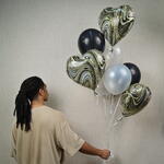 Set de globos rellenos de helio: 6 globos de látex y 3 globos de foil en forma de corazón. El helio durará de 6 a 8 horas.