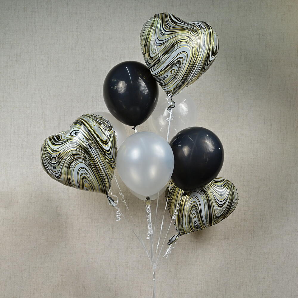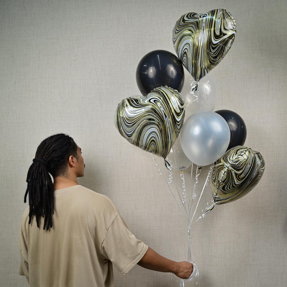 Set de globos rellenos de helio: 6 globos de látex y 3 globos de foil en forma de corazón. El helio durará de 6 a 8 horas.