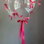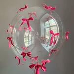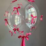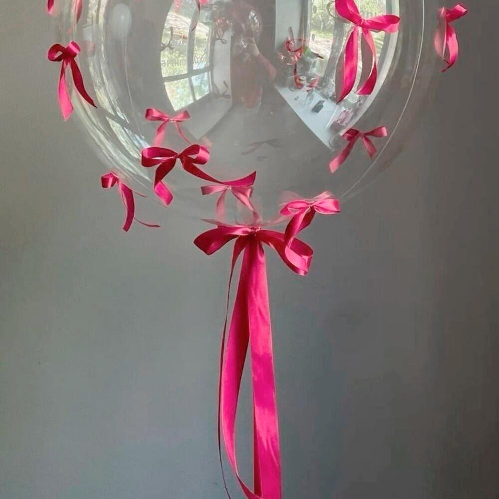 Este globo elegante y único presenta una gran esfera transparente adornada con delicados lazos de satén rosa, creando un aspecto suave y elegante. Ideal para cumpleaños, despedidas de soltera, baby showers o cualquier sorpresa romántica, aporta un toque de ensueño a tu celebración. El globo está lleno de helio y flota hermosamente, captando la luz y los reflejos para un efecto mágico. Para mantener su apariencia, manténlo alejado de fuentes de calor, objetos afilados y la luz solar directa. Guárdalo en interiores para un tiempo de vuelo más prolongado y un mayor atractivo visual. El color de las cintas se puede cambiar por cualquier otro color. Un globo de helio flota. Los globos permanecen en vuelo durante 8 a 10 horas.