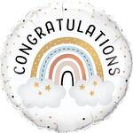 Este globo "Congratulations" con diseño de arcoíris en tonos pastel es ideal para dar la bienvenida a un recién nacido, un primer cumpleaños o un bautizo. Está disponible como globo foil individual (18). Personalízalo con un mensaje de regalo al finalizar la compra. Los globos flotan al menos 3 días en condiciones adecuadas.