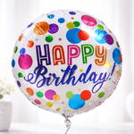 Celebra con estilo con nuestro vibrante globo redondo de aluminio con la frase "Feliz Cumpleaños", bellamente diseñado con detalles coloridos para un toque alegre. Inflado con helio de alta calidad y con el peso adecuado para una presentación elegante, es perfecto para decorar fiestas o como una grata sorpresa de cumpleaños. Duración: Aproximadamente de 8 a 10 horas (se recomienda su uso en interiores).