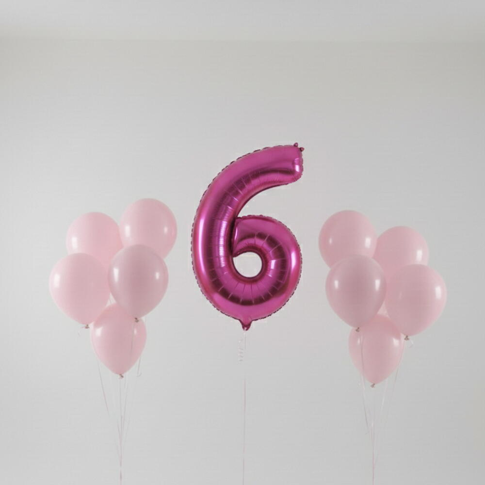 Celebra un cumpleaños especial con este elegante set de globos número seis en color rosa. Incluye un globo número de papel de aluminio rosa de 40 pulgadas y 10 globos de látex de 12 pulgadas, perfectos para decoraciones de cumpleaños, mesas de pastel y fondos para fotos.