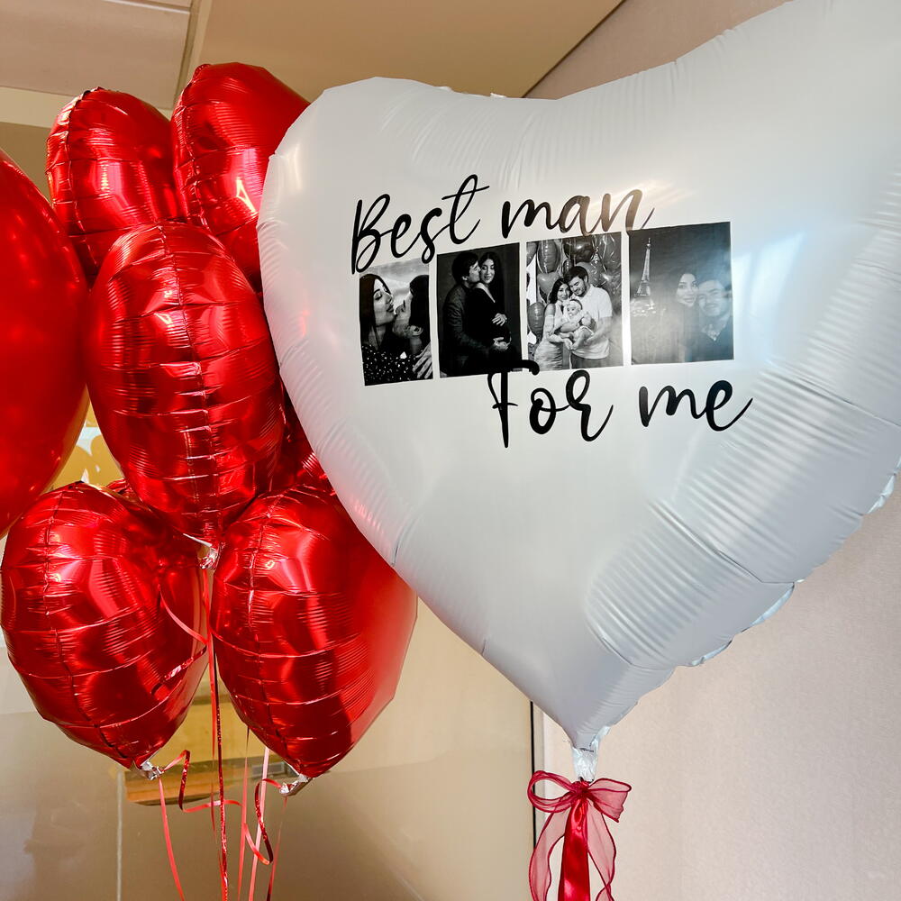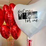 El set incluye: 1 corazón de 36 pulgadas 4 fotos Texto personalizado Ramo de 5 corazones