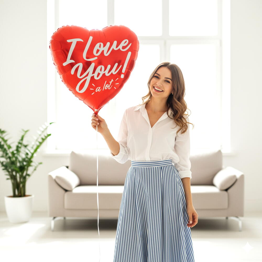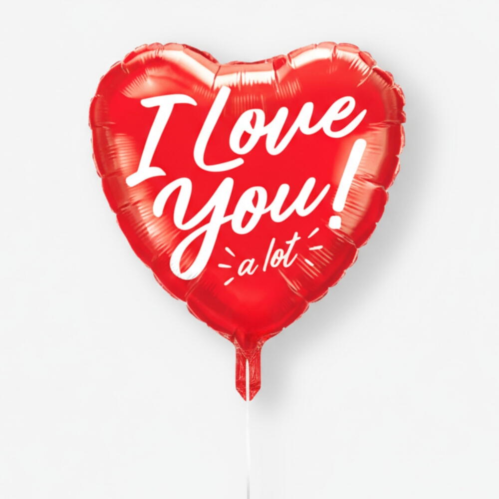 Complemento perfecto para flores, pasteles o cestas para el Día de San Valentín y sorpresas románticas. Expresa tus sentimientos más profundos con este atrevido globo metálico rojo en forma de corazón, bellamente impreso con “I Love You A Lot.” Perfecto para mostrar amor y cariño en aniversarios, el Día de San Valentín o cualquier momento especial.