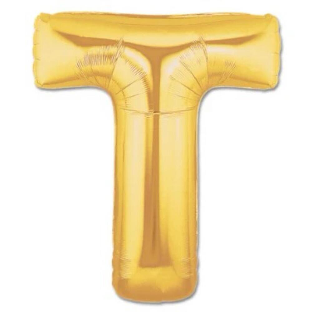 Globo metalizado dorado en forma de letra T