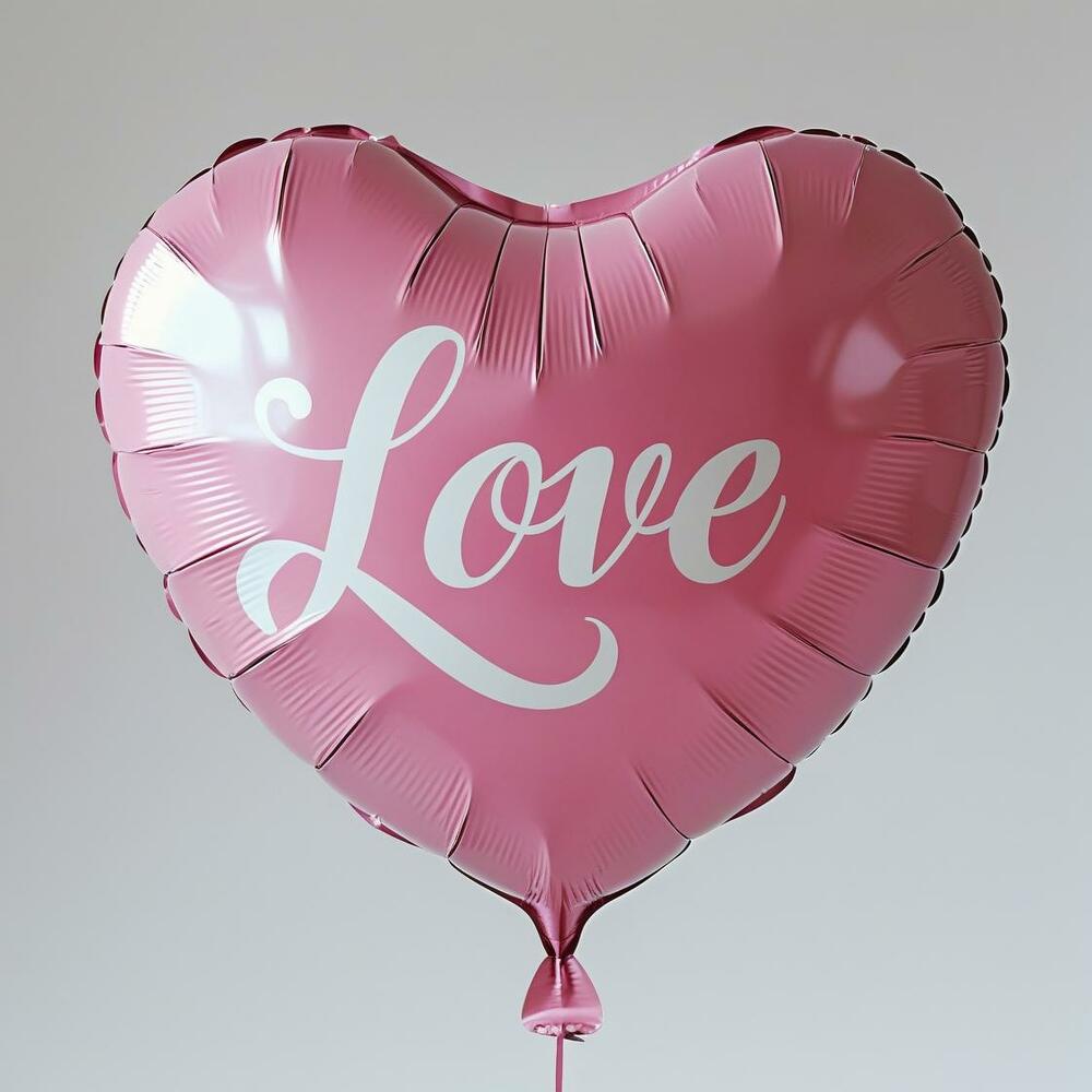 Globo metalizado rosa en forma de corazón con la palabra «amor» escrita y relleno de helio. El helio durará entre 8 y 10 horas.