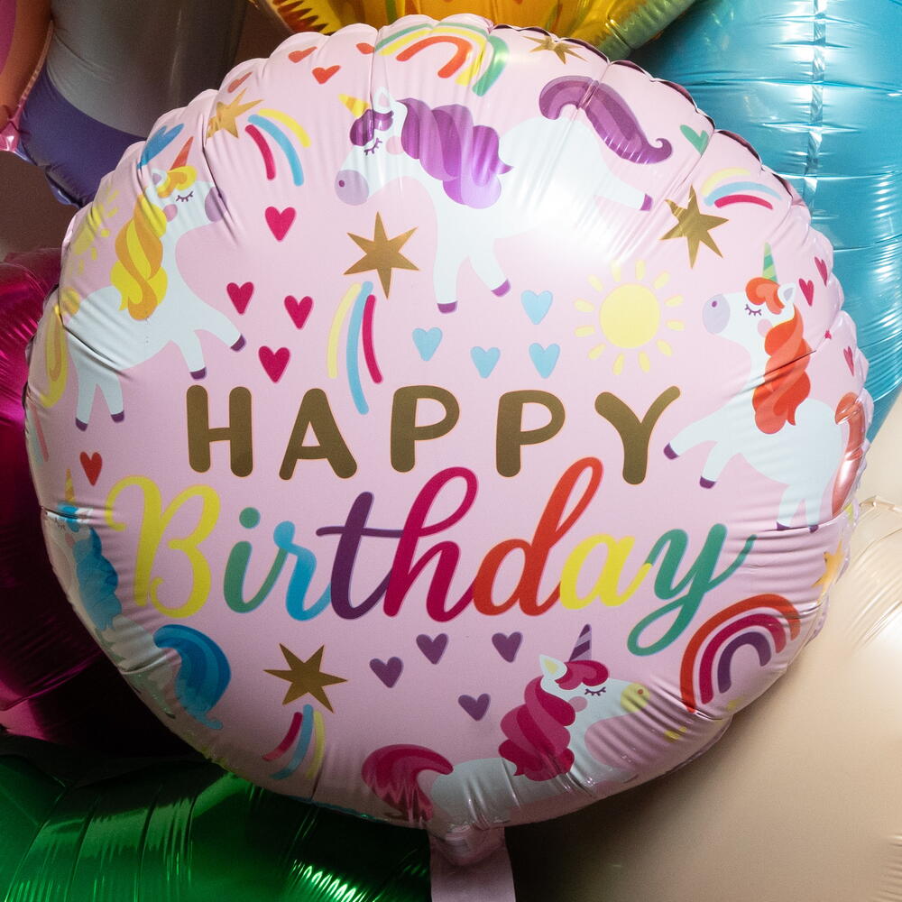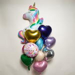 Unicornio Arcoíris Feliz Cumpleaños Set de Globos de Foil – 9 Corazones 7388