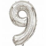 Globo Metalizado Plateado Número Nueve (Inflado con Helio)