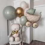 Oso inflable Cochecito de bebé Globo grande mate personalizado 6 globos lisos y 1 globo cromado dorado
