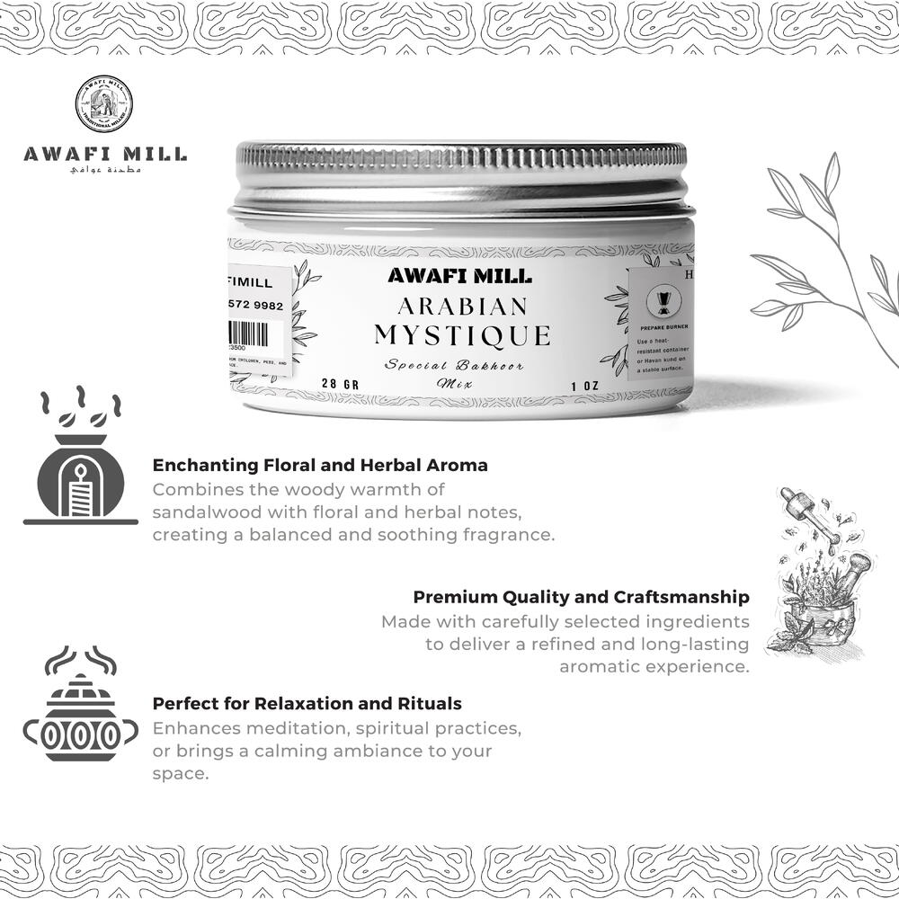 AWAFI MILL Arabian Mystique Bakhoor Mix – Una mezcla lujosa para un ambiente tranquilo y espiritual - Frasco de 170 gramos (6 Oz)