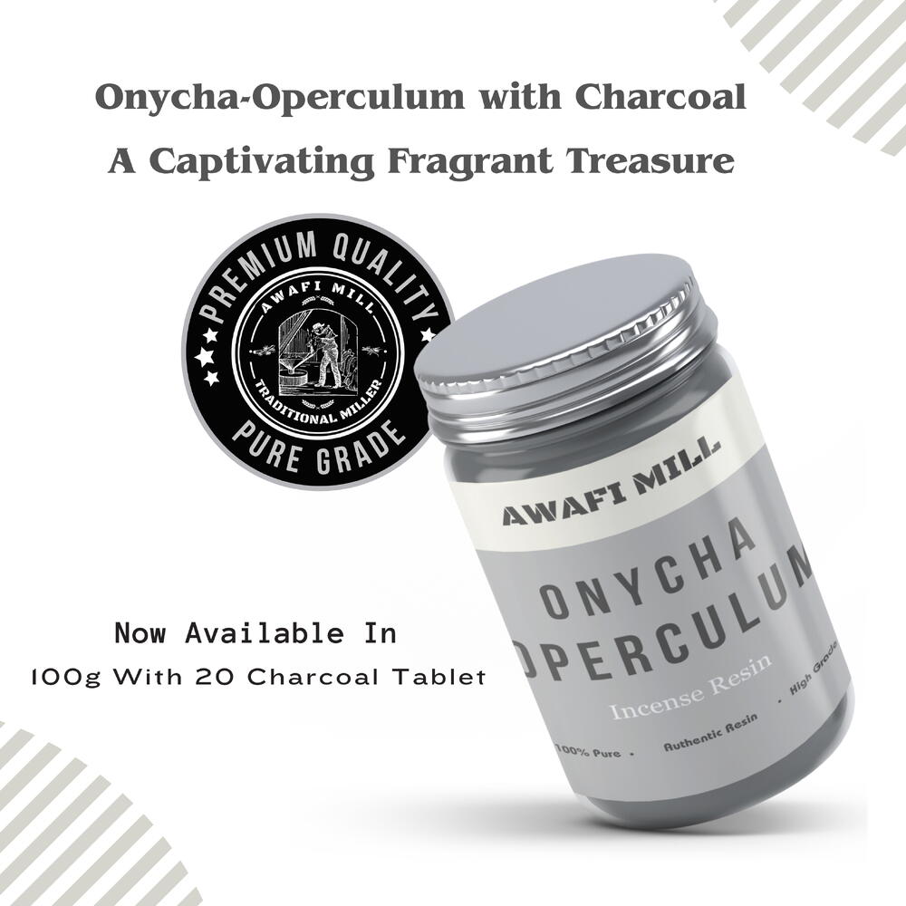 AWAFI MILL Onycha-Operculum fina | Tabletas de carbón - Botella de 100 gramos con 20 tabletas de carbón